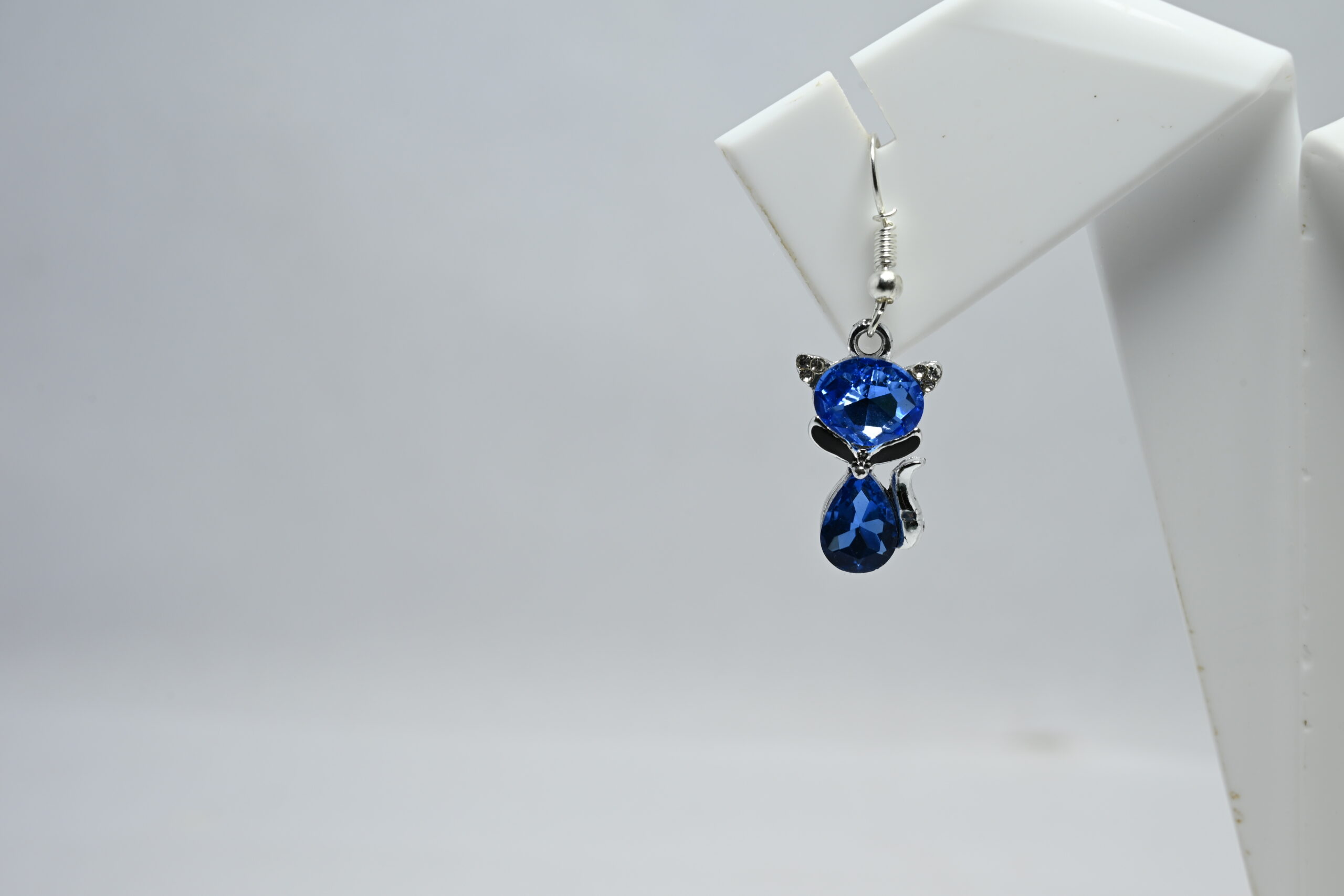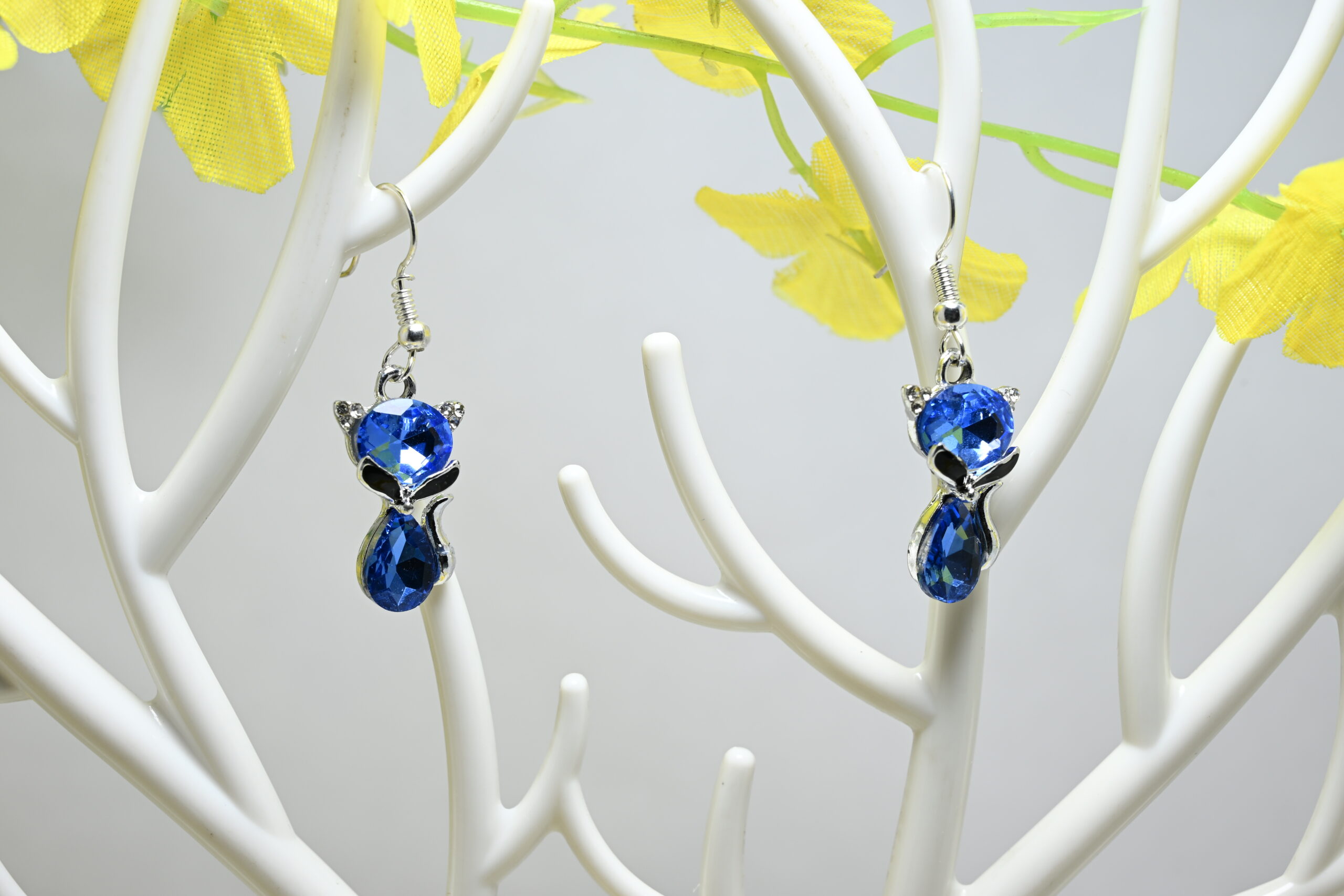 Authentic Gemstone CUBIC ZIRCONIA Charms Earrings (Blue)