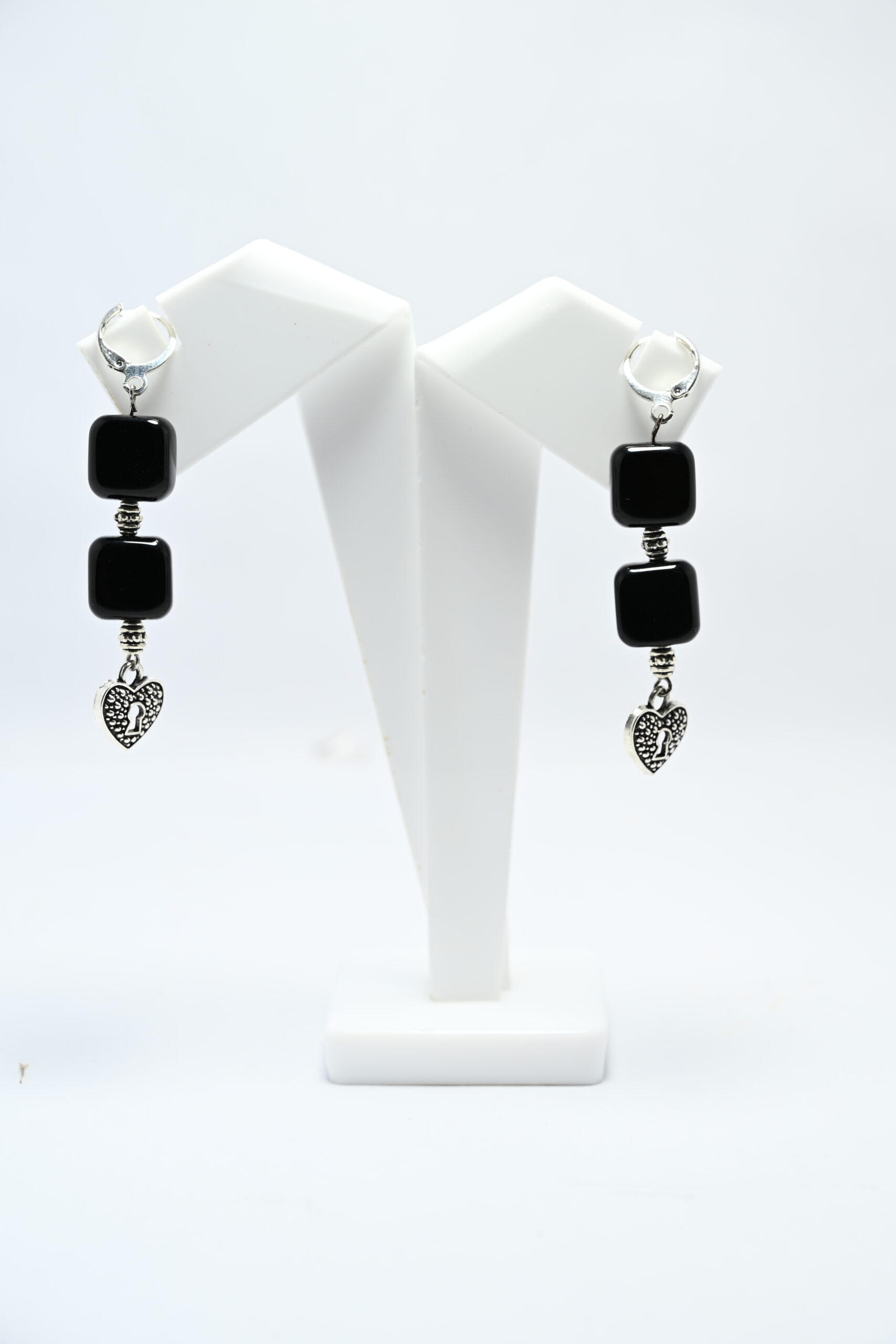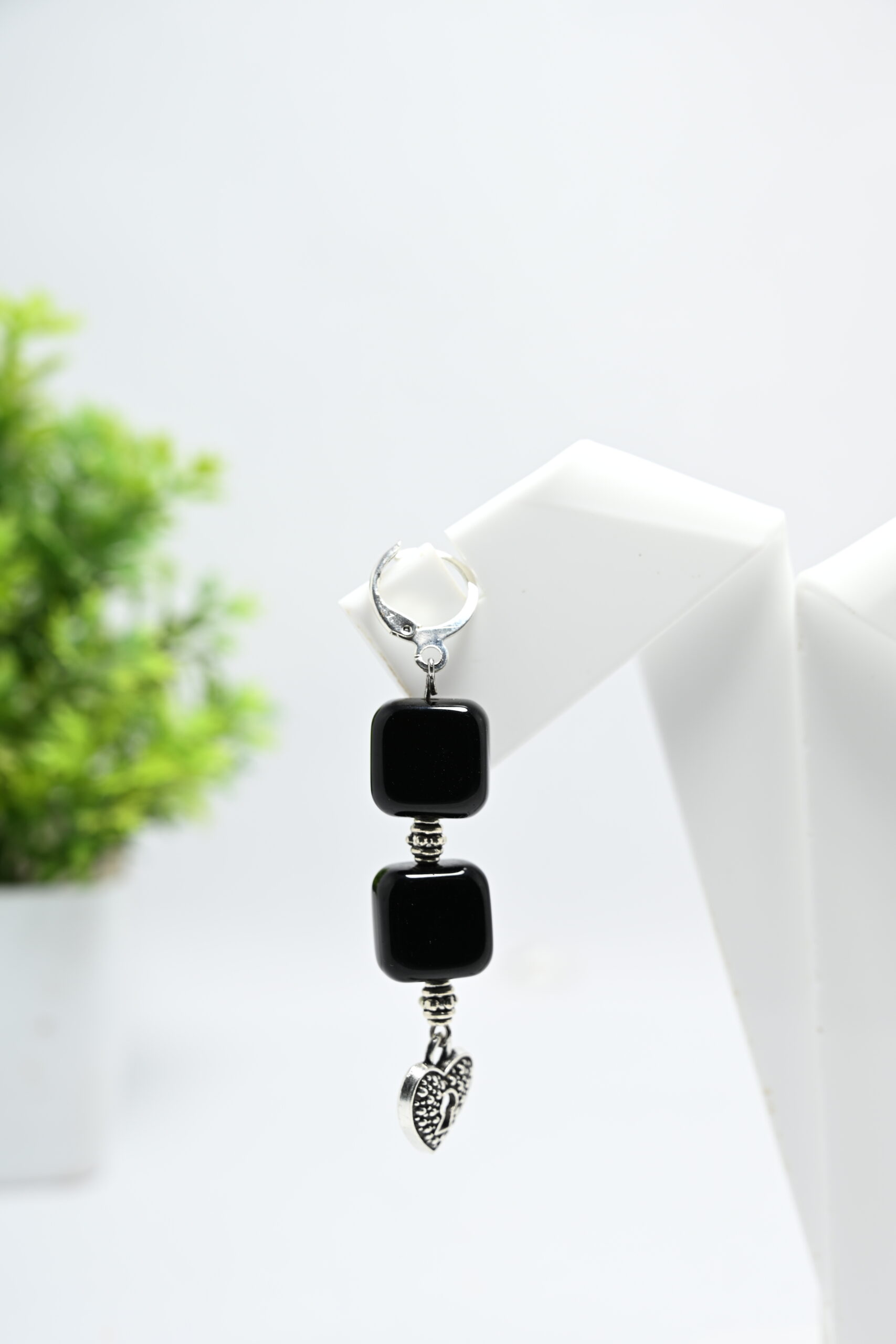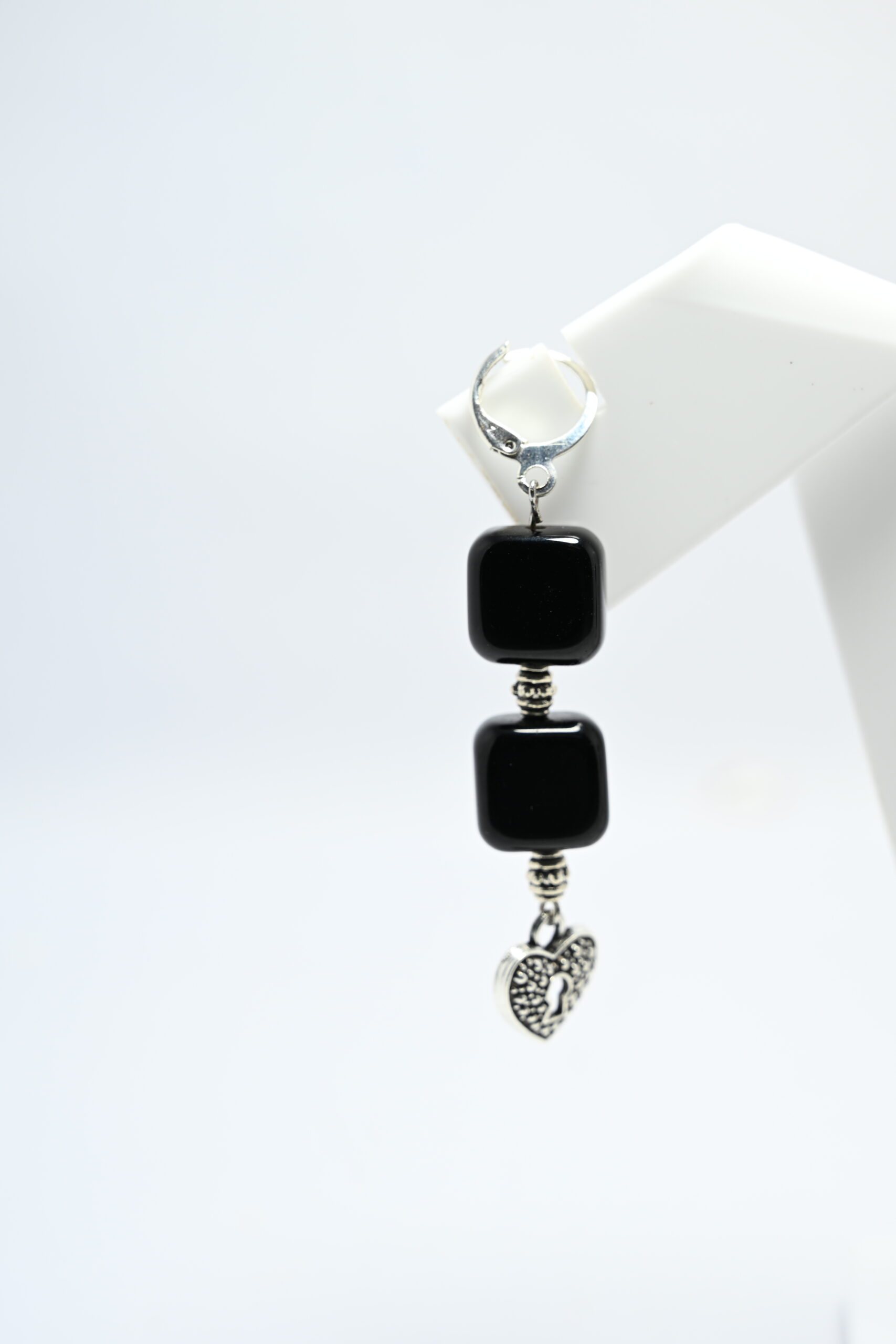 Beads Square Cube Tumble Onyx Black Beads – Double & Heart