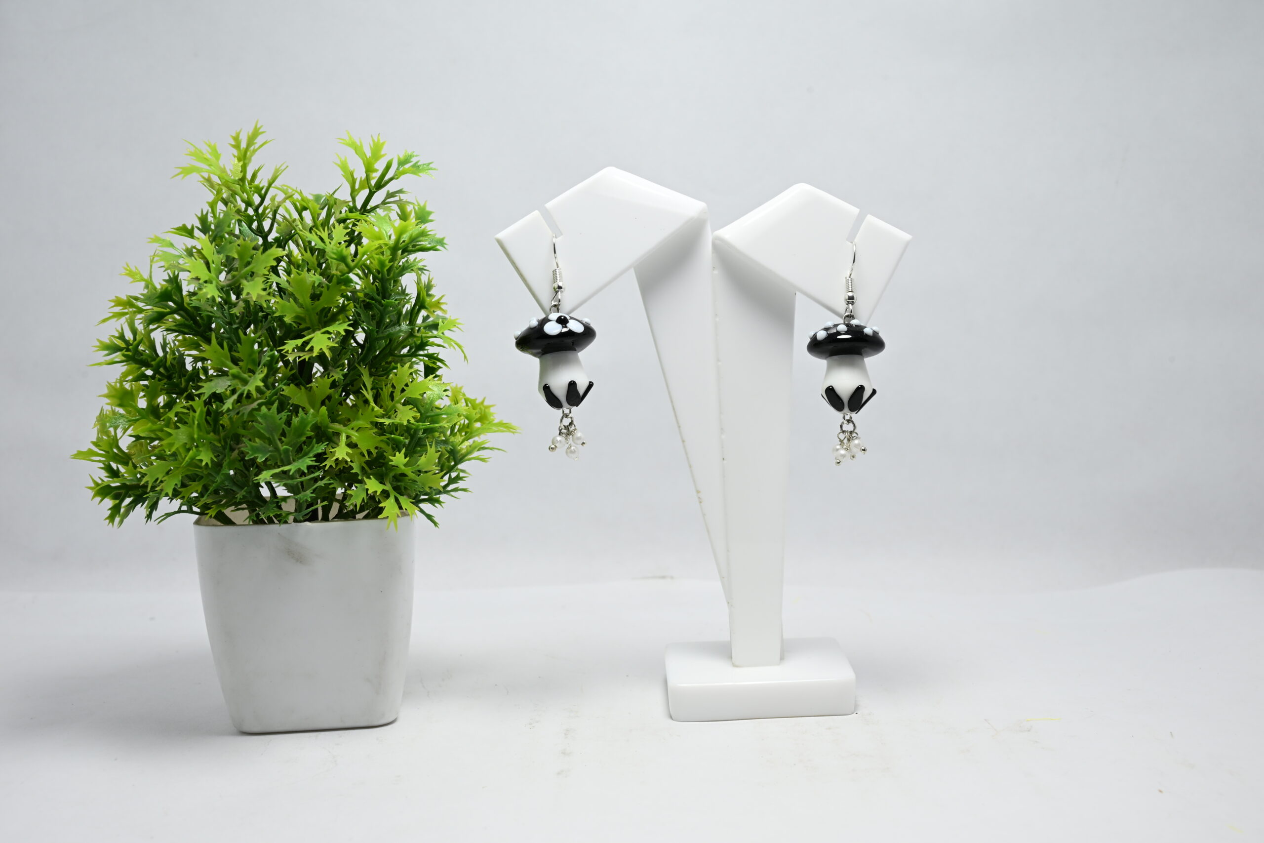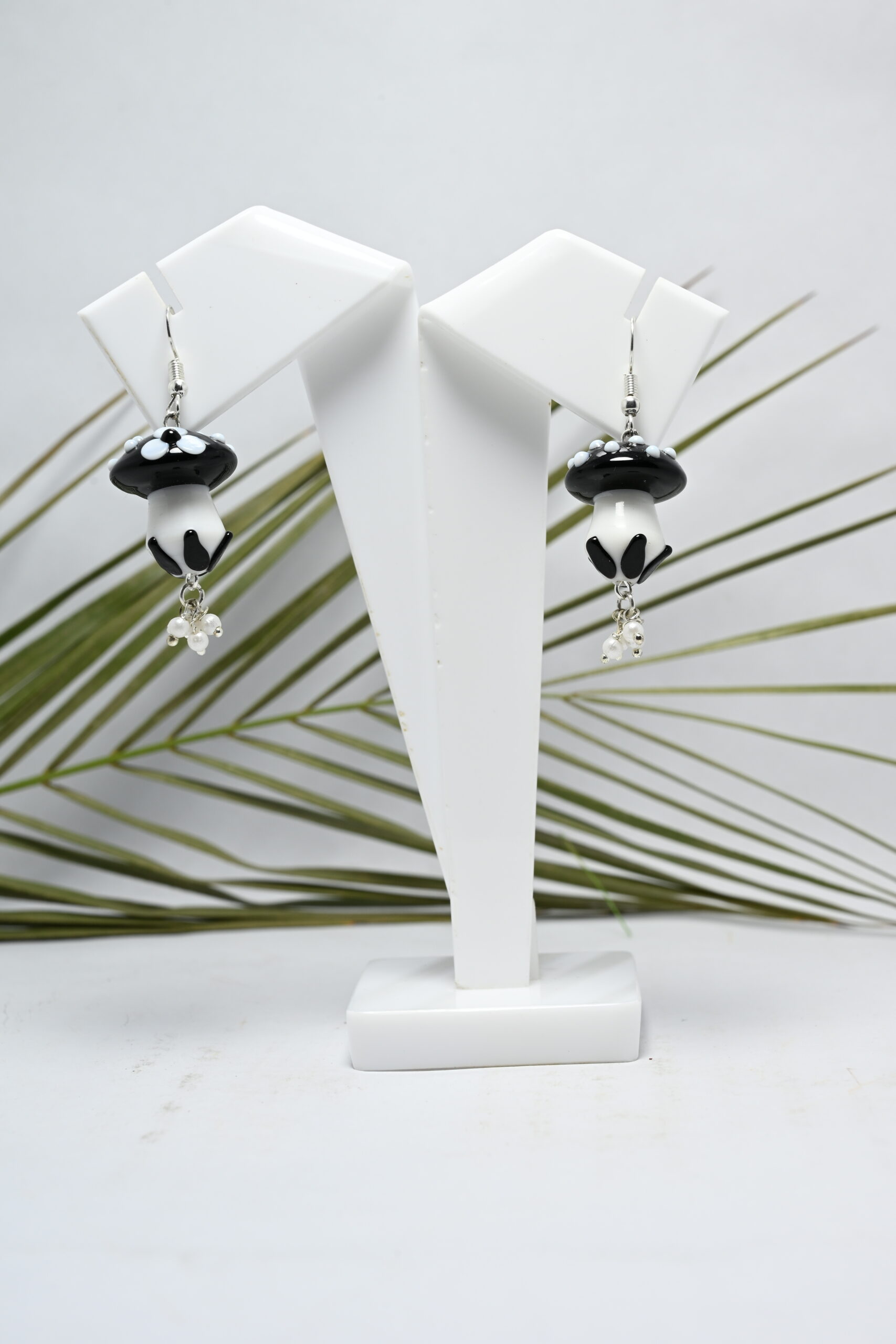 Be the first to review “Handmade Lamp-work Glass Beads Earrings (Black & White – Mashroom )”