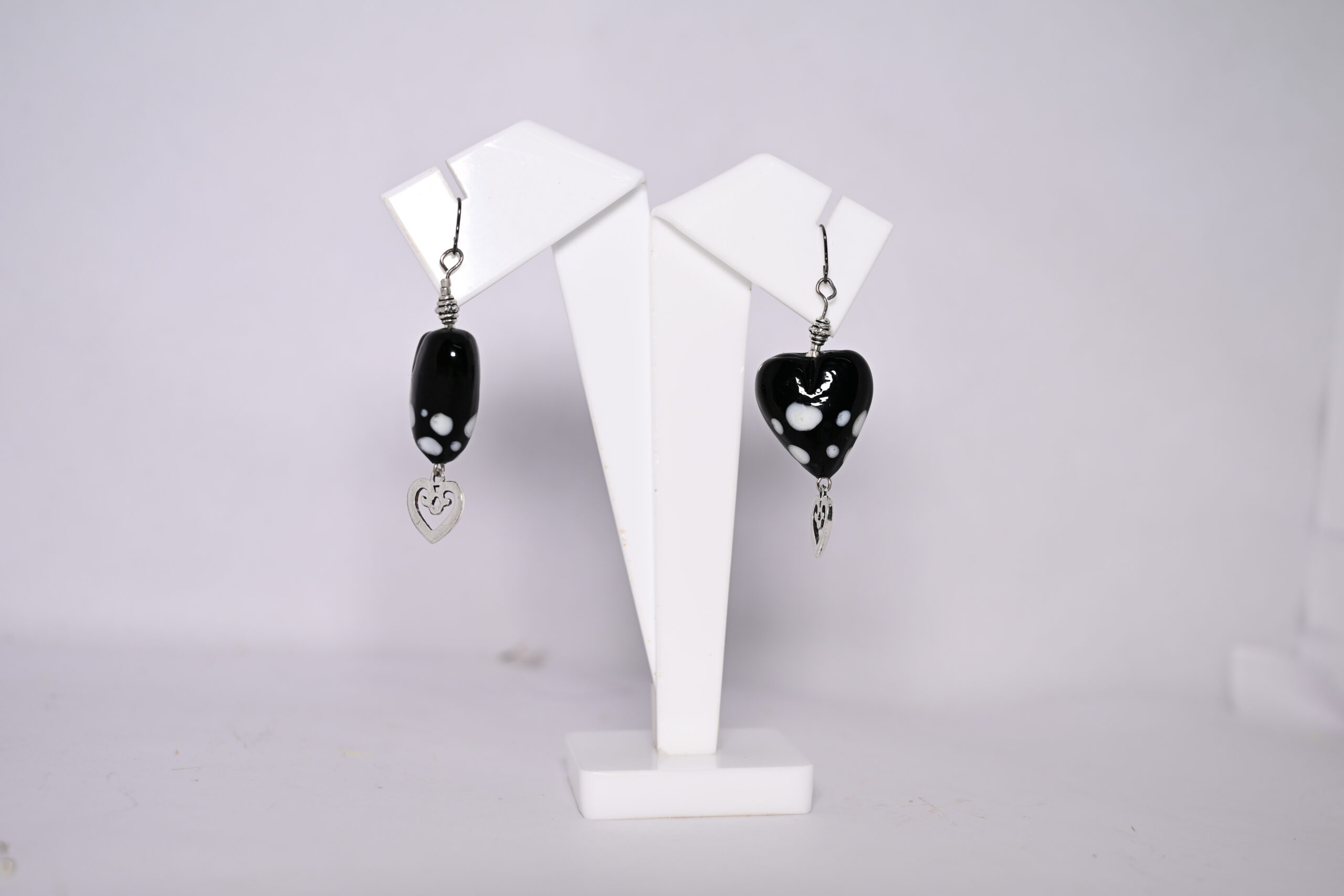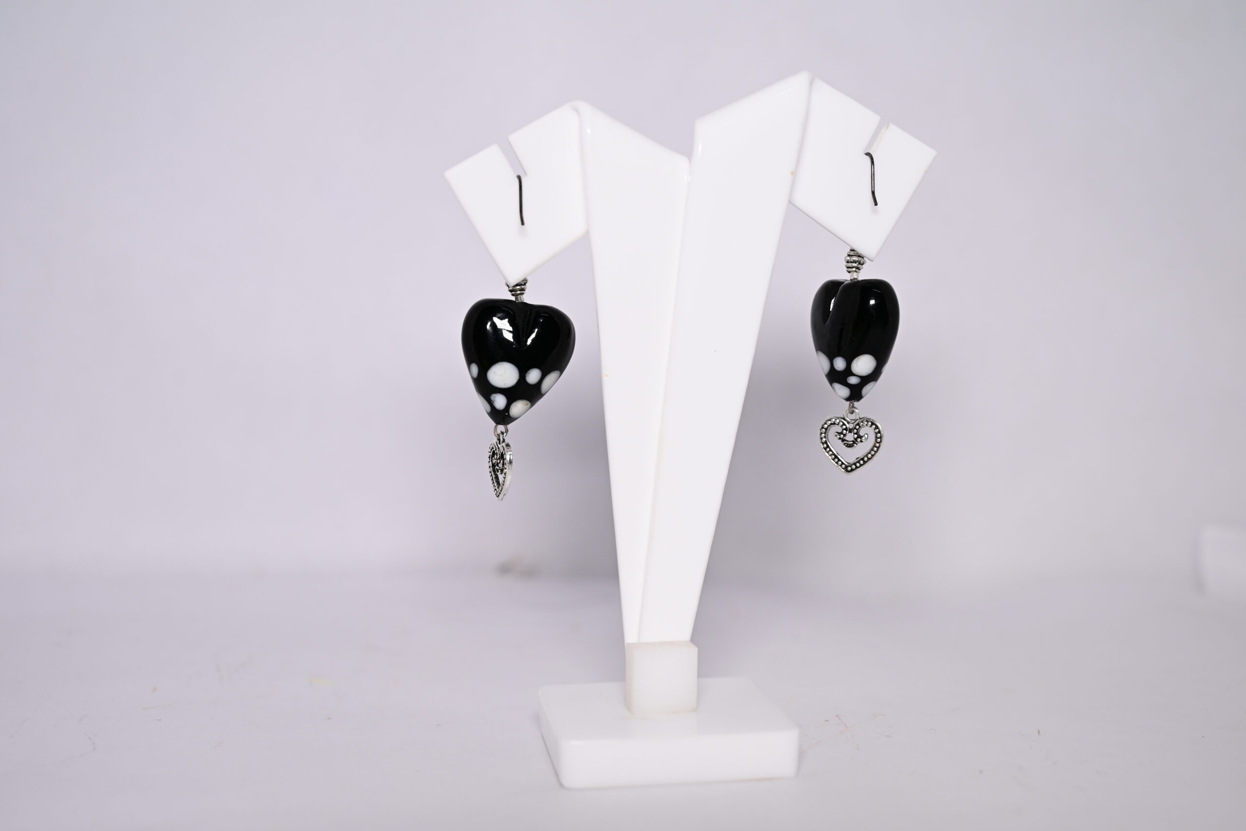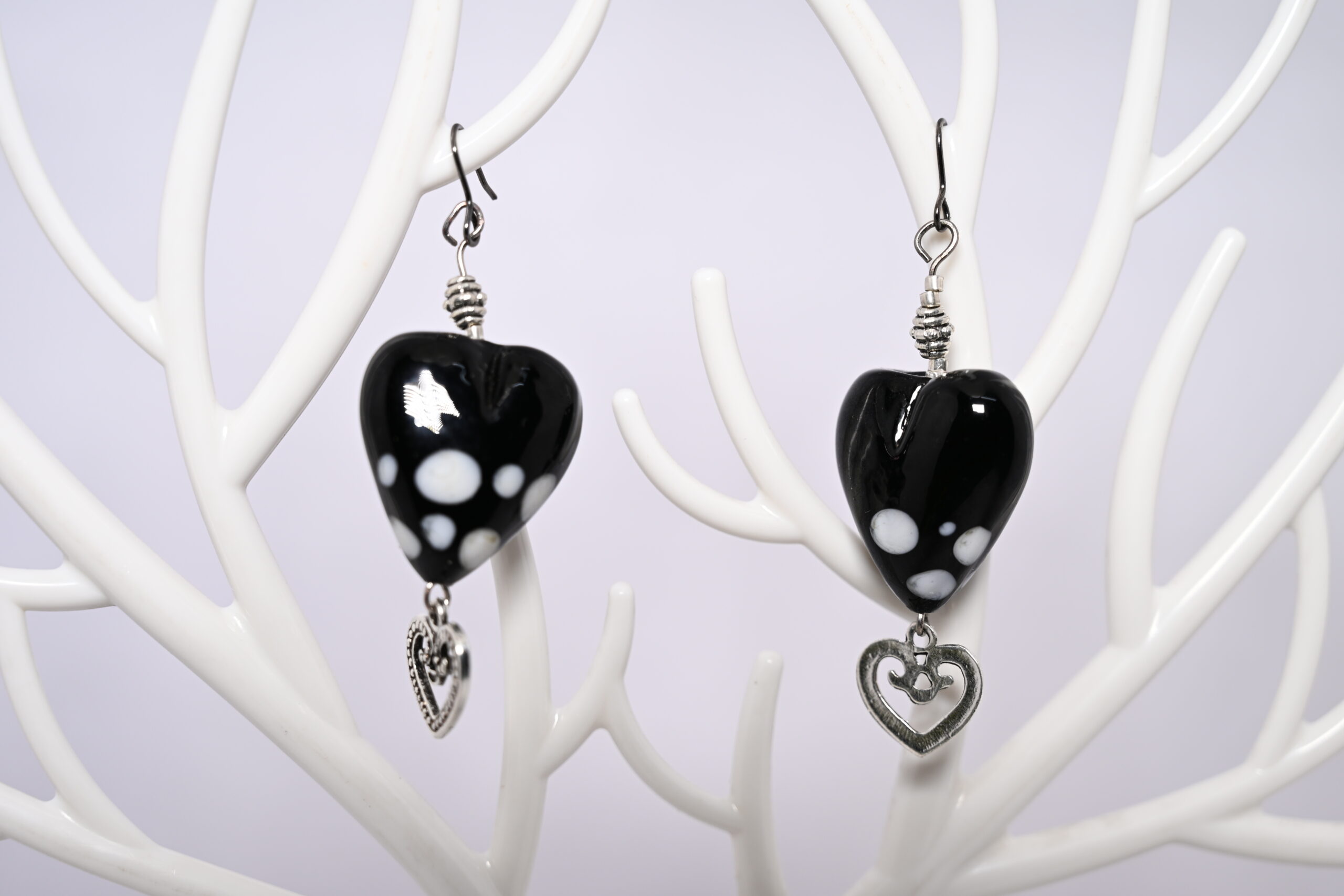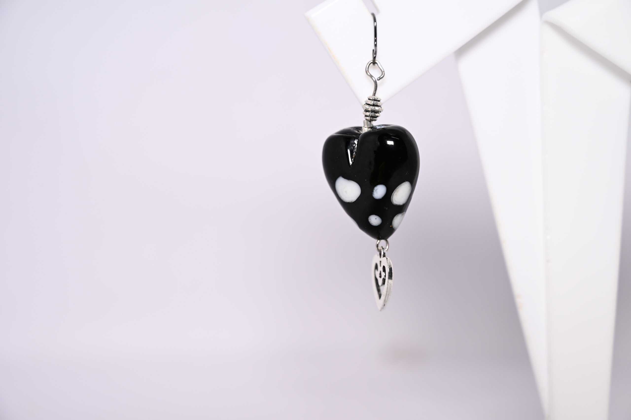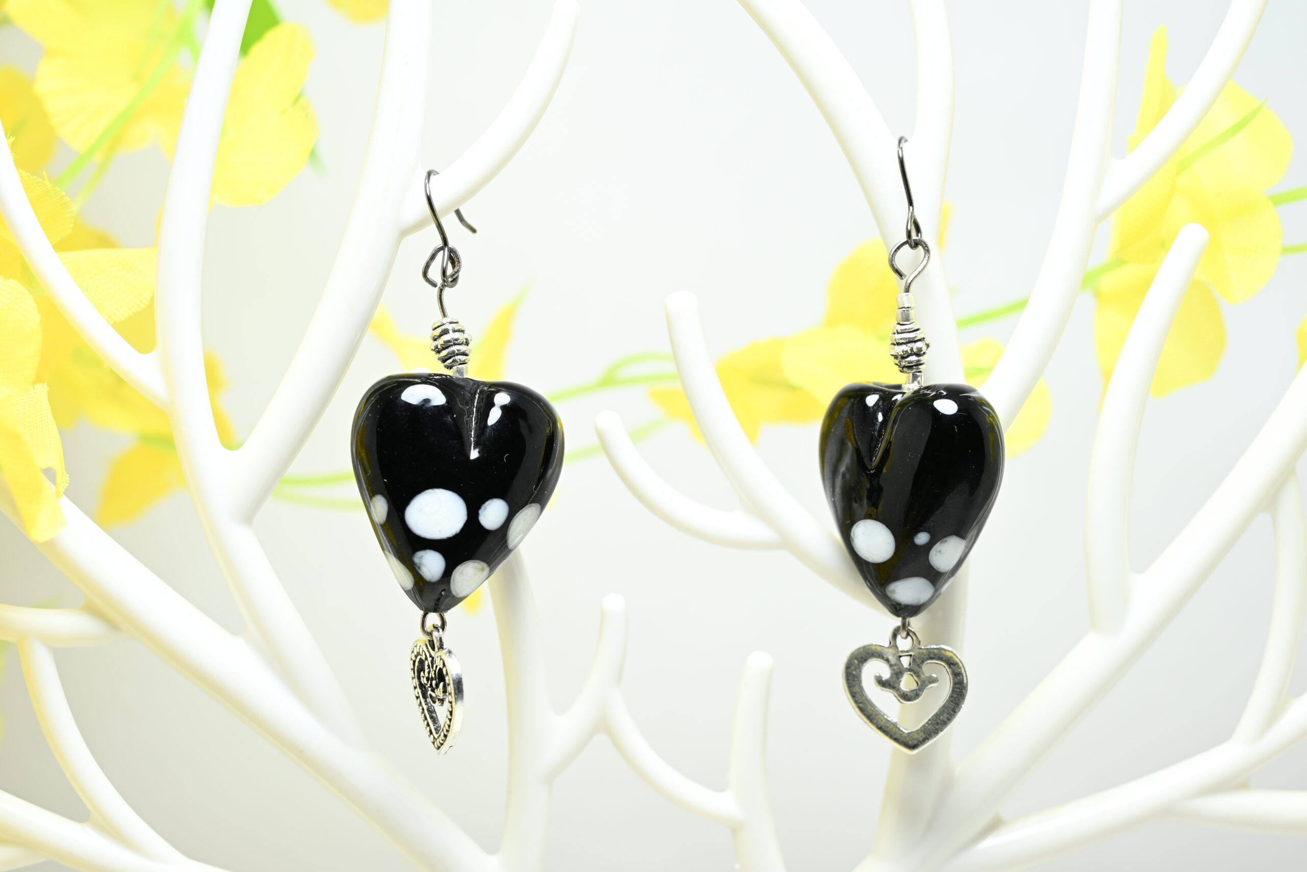 Be the first to review “Handmade Lampwork Glass Beads Earrings Black (Heart-Shape 01)”
