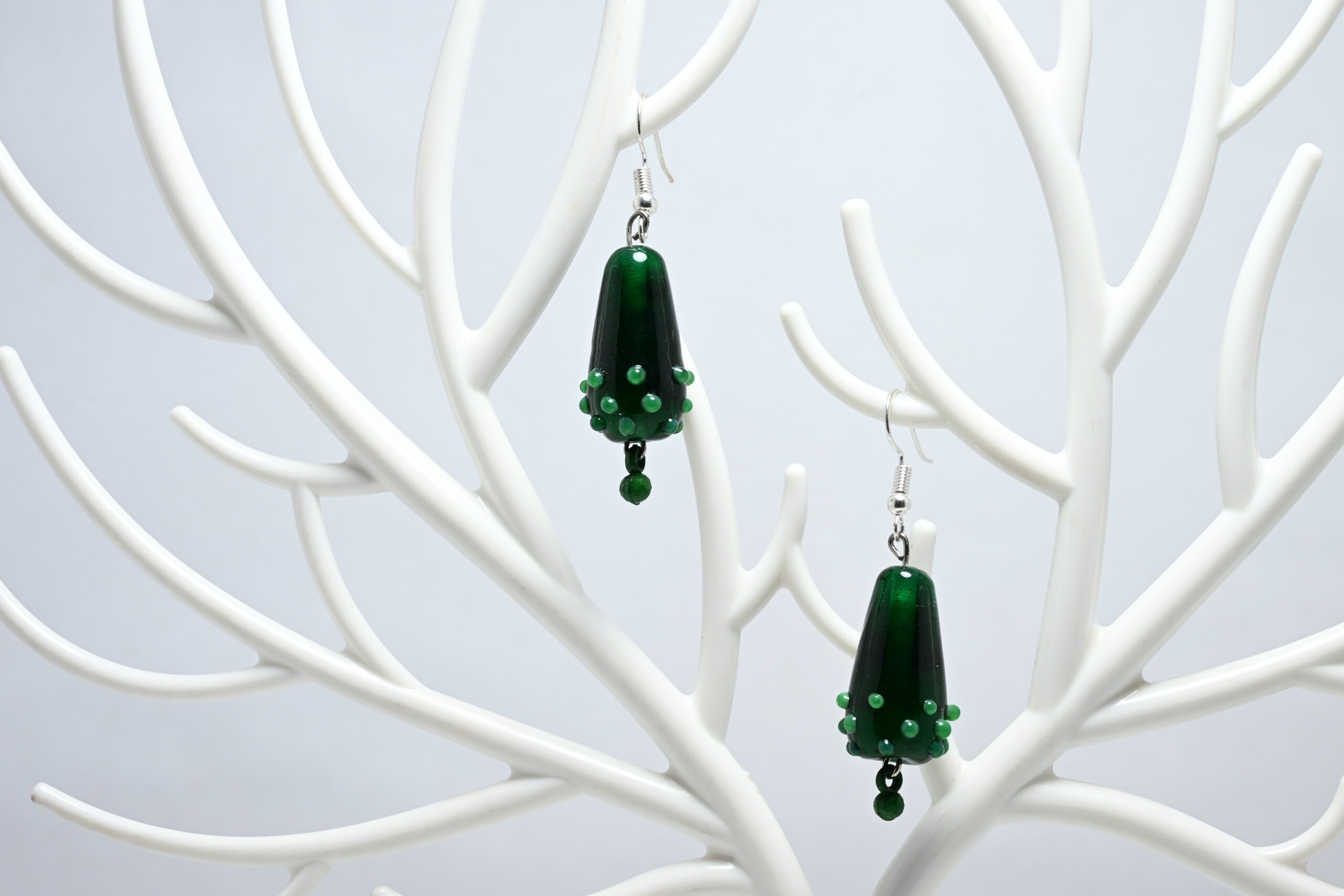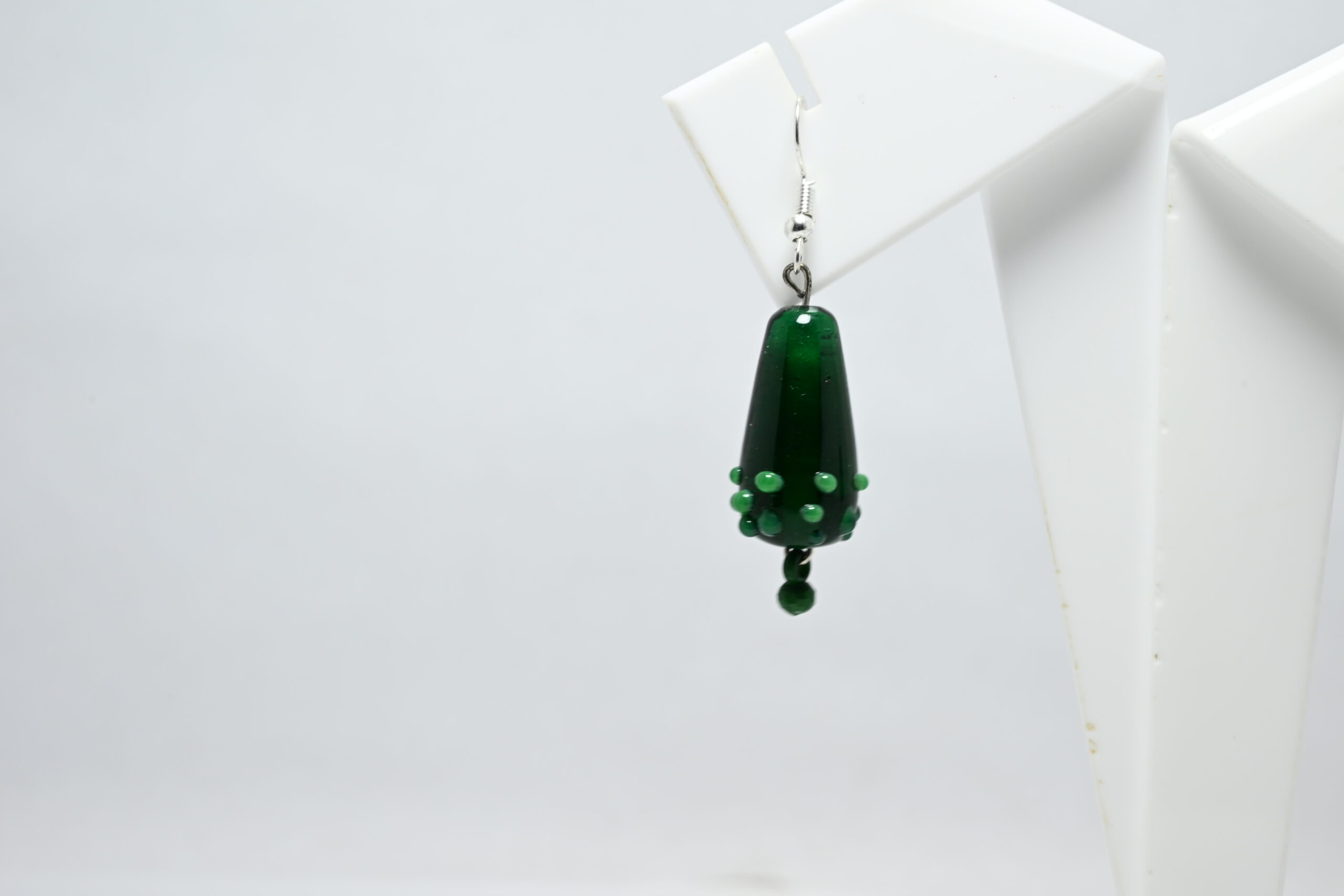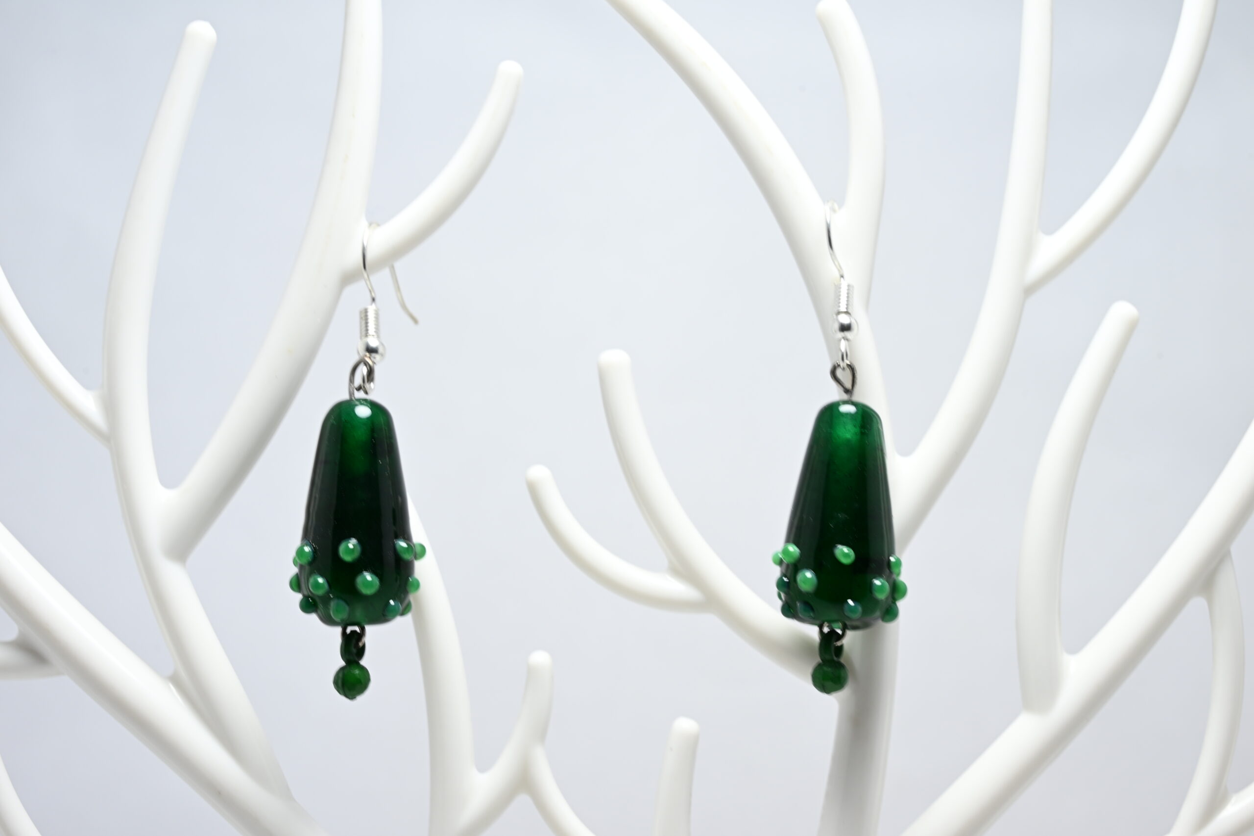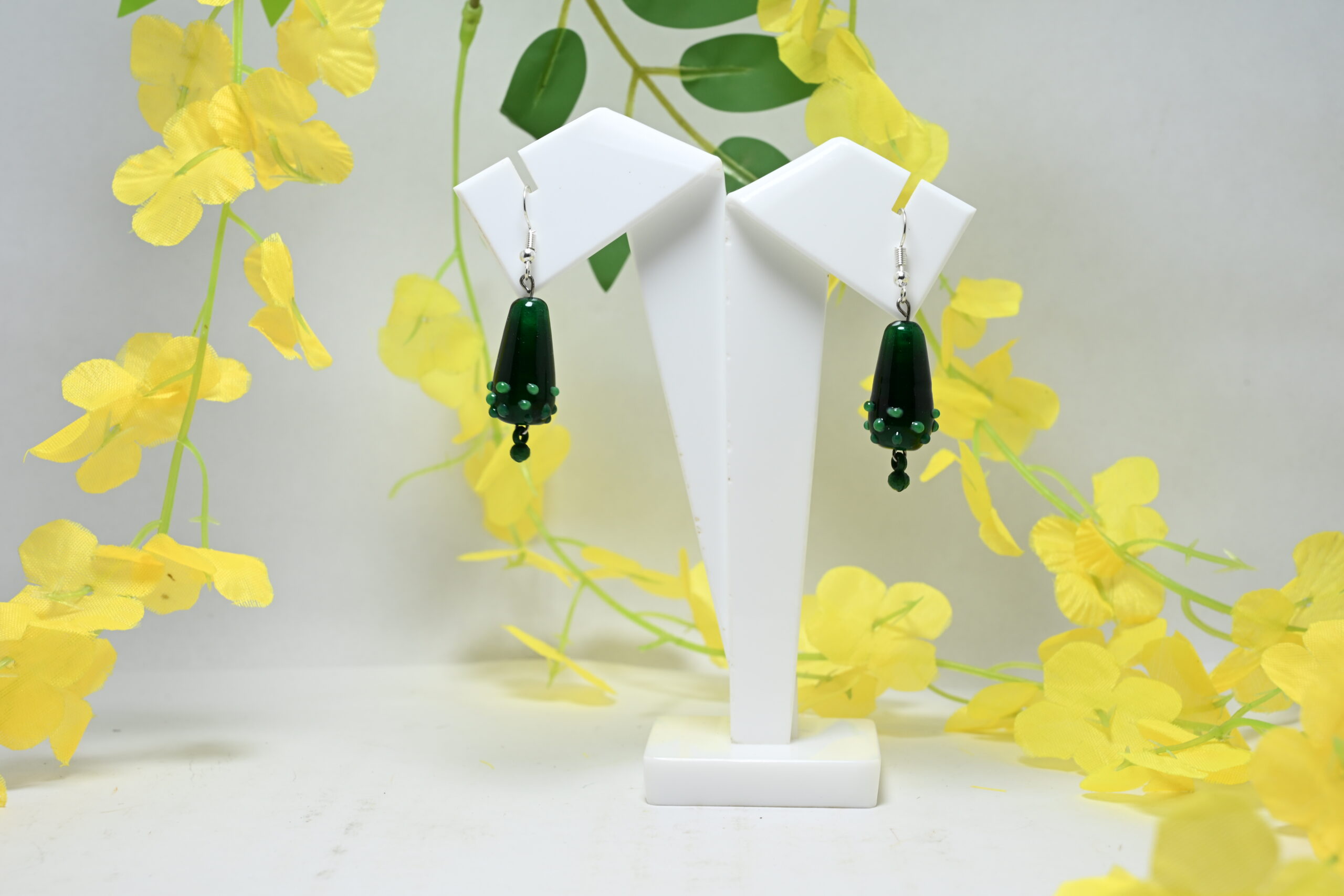Be the first to review “Handmade Lampwork Glass Beads Earrings Green – Long”