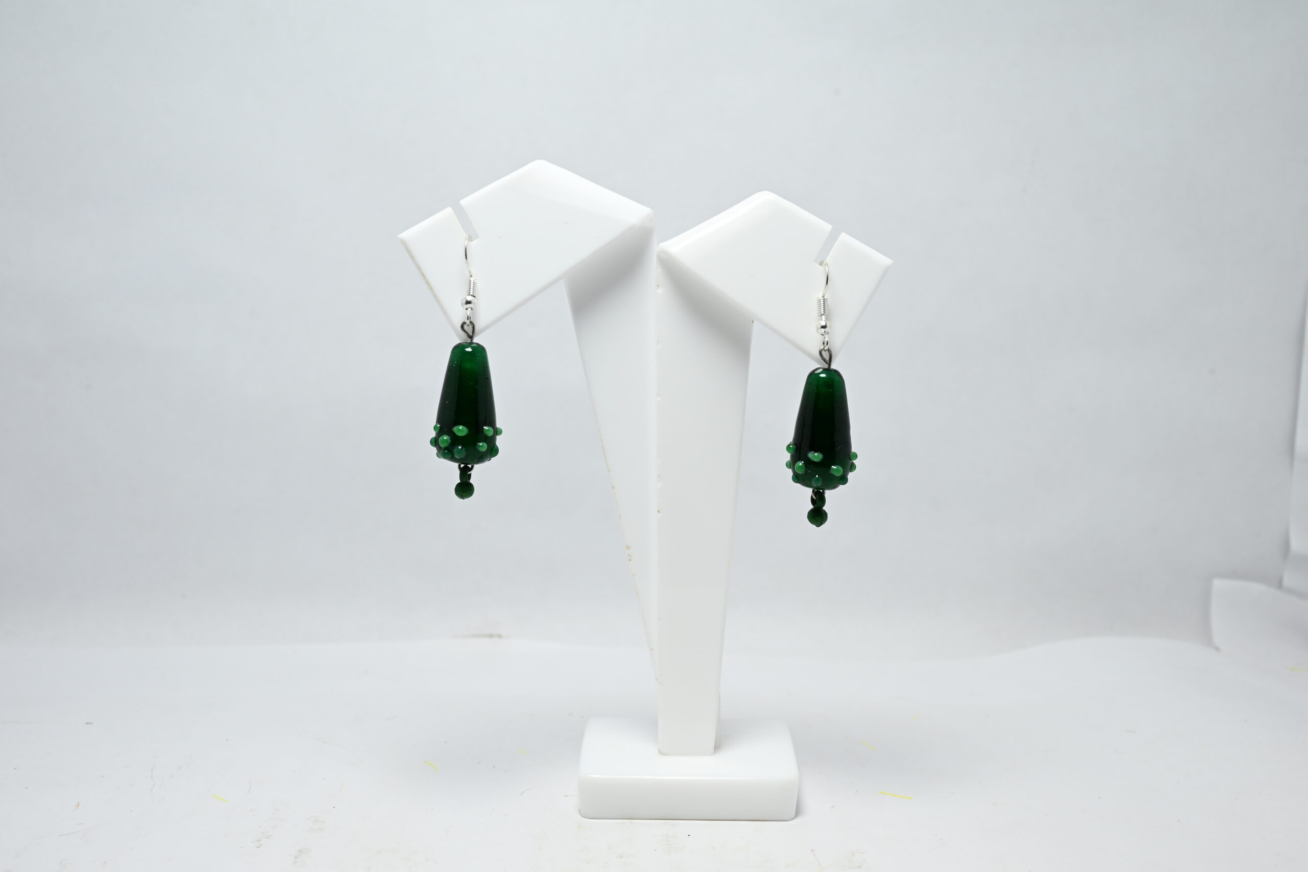 Handmade Lampwork Glass Beads Earrings Green – Long