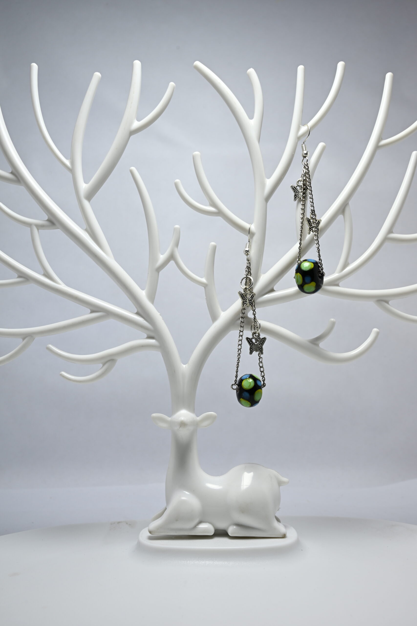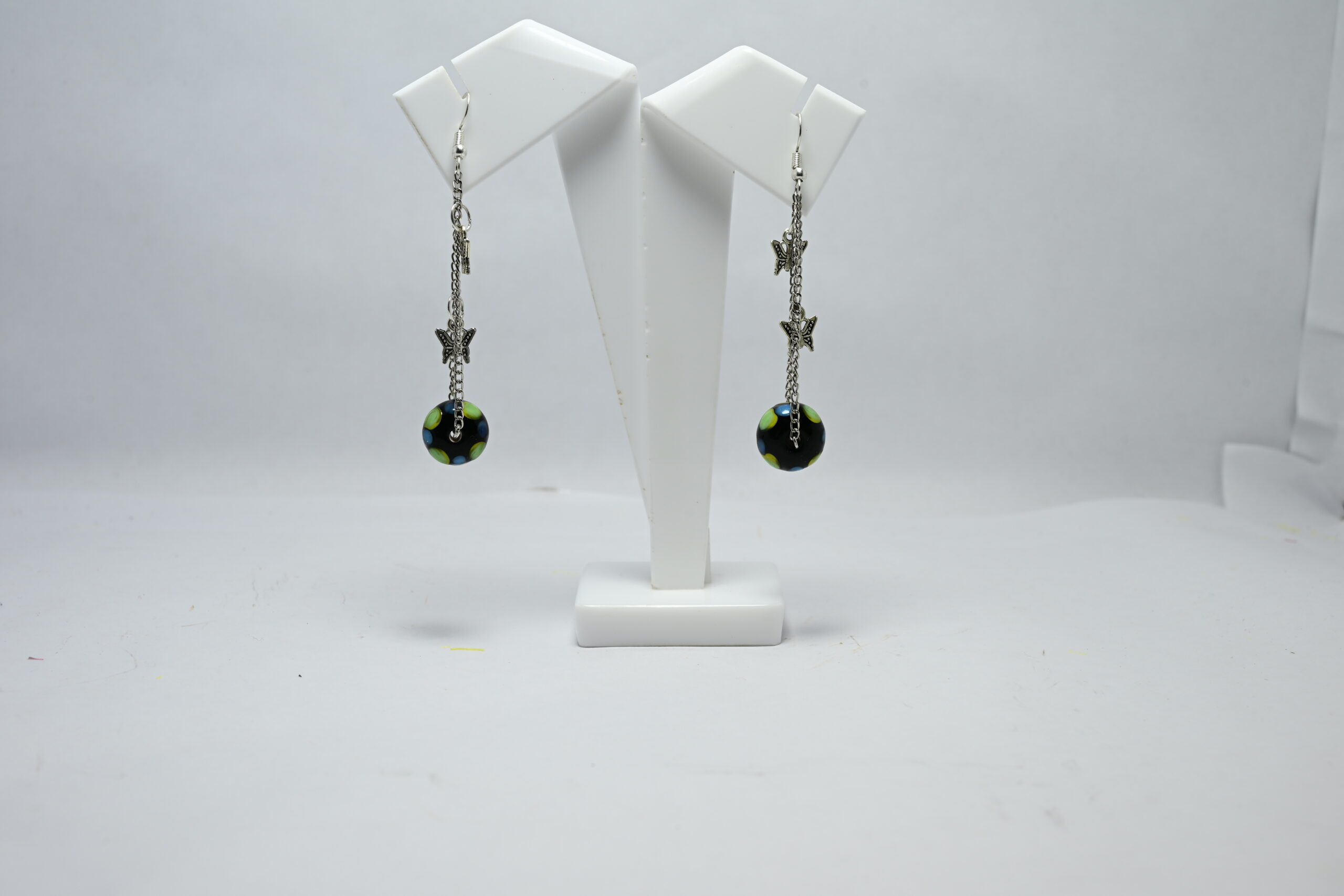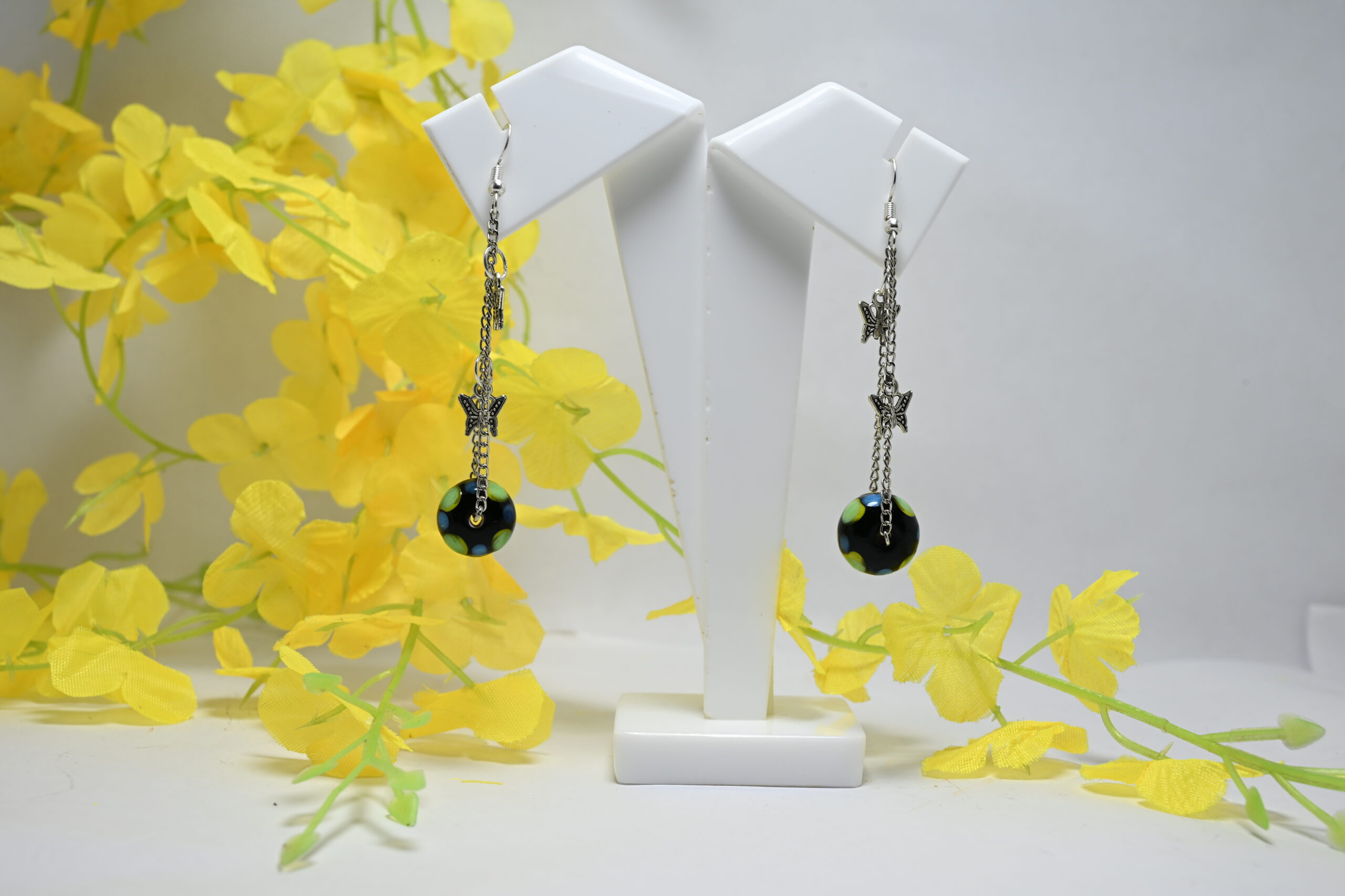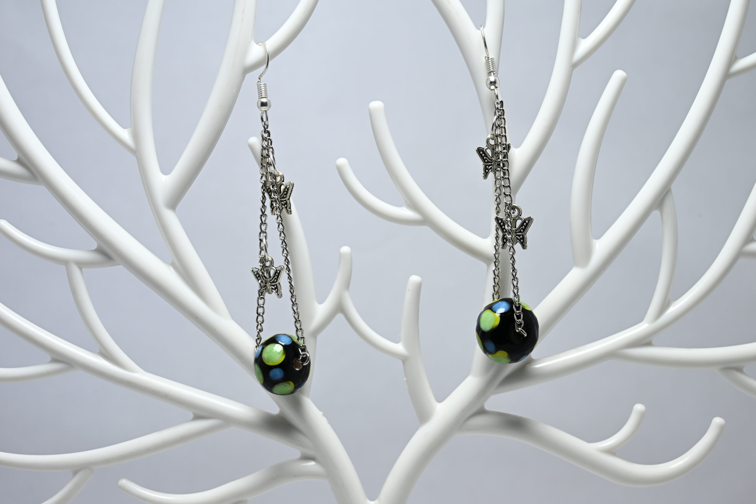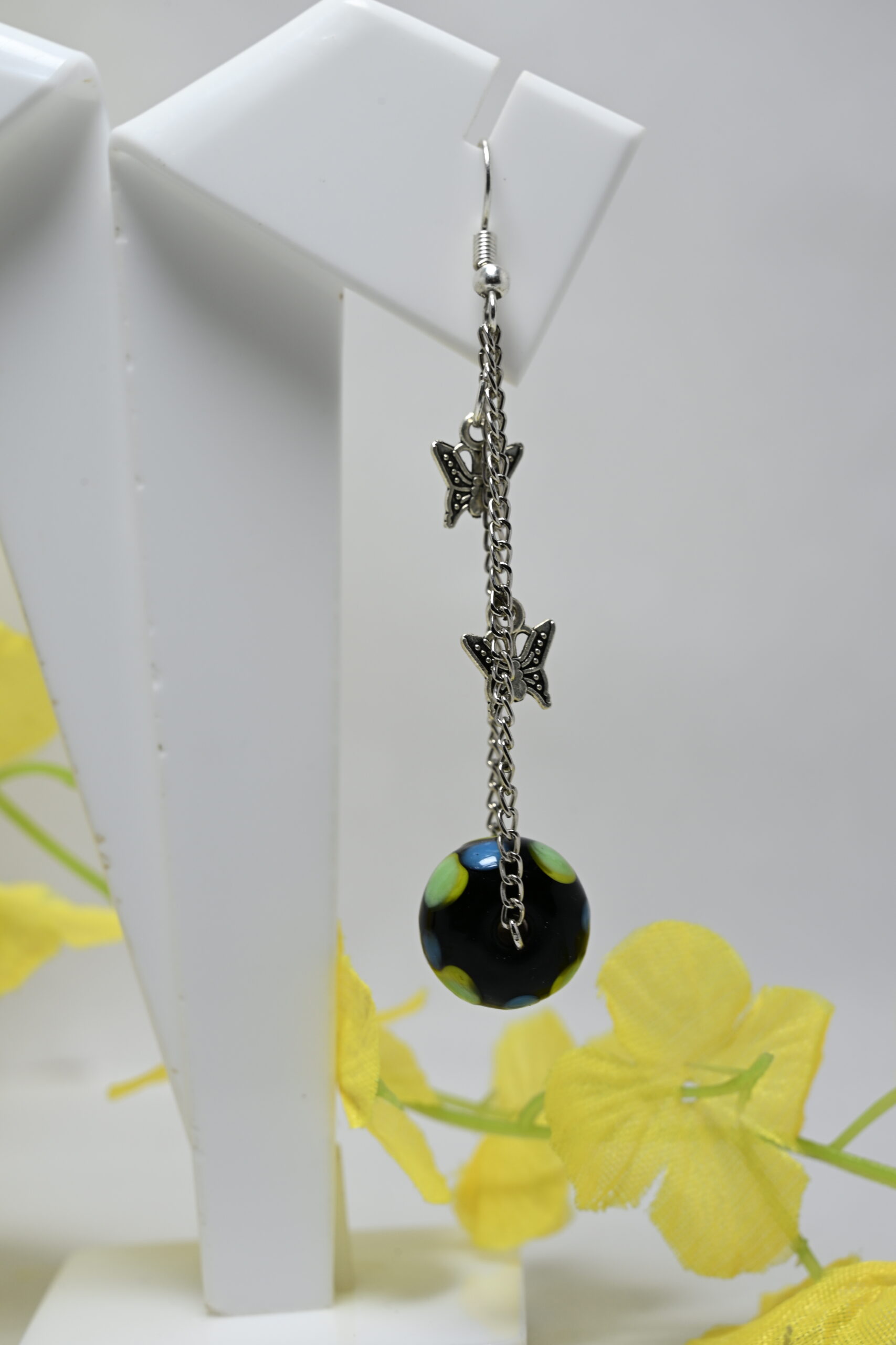 Handmade Lampwork Glass Beads Earrings Long (Multi – Round)